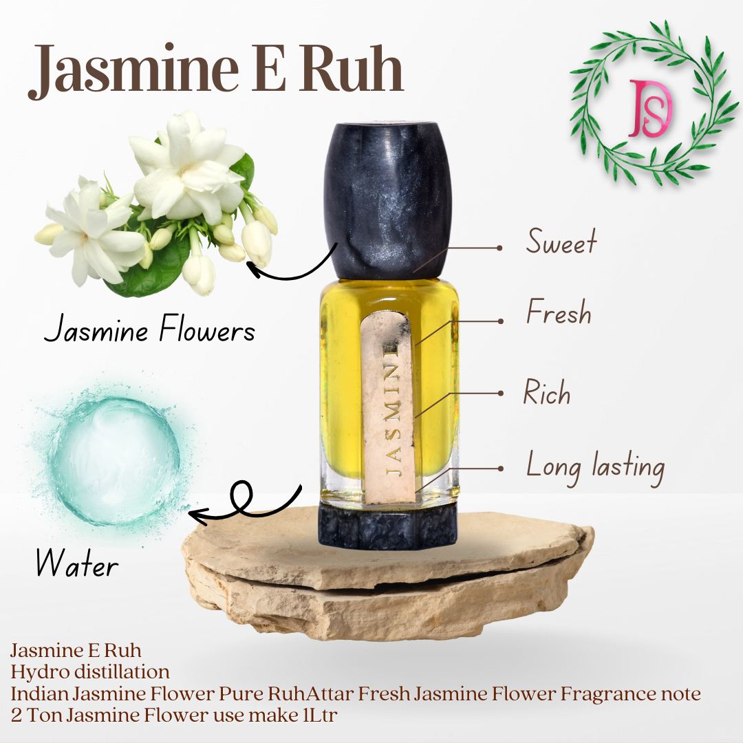 Product Jasmine Absolute is an exquisite attar, or natural fragrance oil, from India. It is made from jasmine flowers that are hand-picked in the early morning hours to capture the essence of the flowers in their freshest form. The oil is extracted by steam distillation, ensuring that the fragrance is of the highest quality. This attar has a strong jasmine aroma, with a hint of woody notes. The scent is highly floral, with a subtle sweetness and a light muskiness that lingers. It is a warm and feminine fragrance, perfect for a romantic night out, or a quiet evening at home. It is also known to be an aphrodisiac and can be used to set a romantic mood. The oil is packaged in a beautiful glass bottle and can be used in an oil diffuser, on its own, or blended with other fragrances. It is an ideal gift for a special occasion and will provide an unforgettable scent that will linger in the air and bring a sense of calm and relaxation to any room.