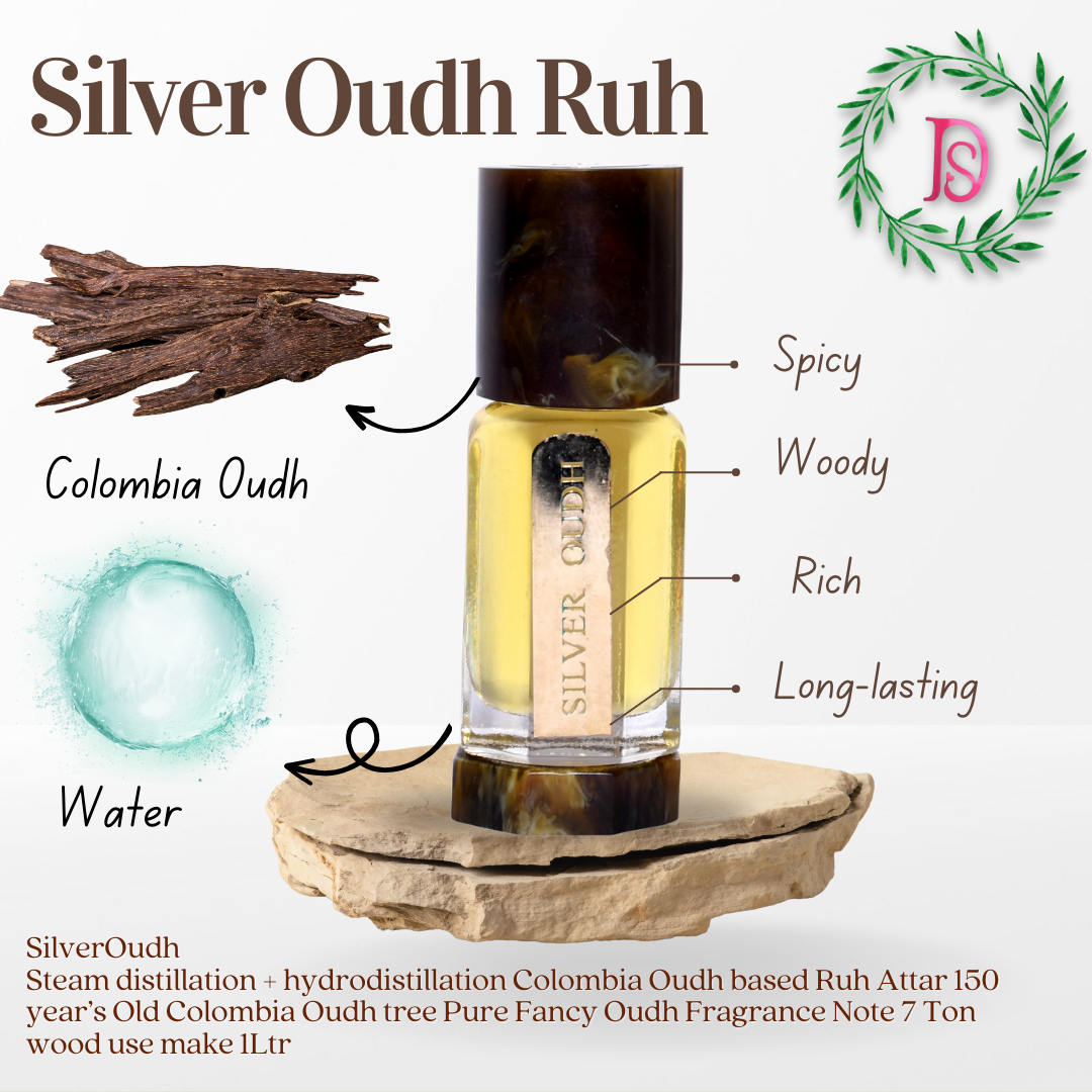 Silver  Oud 7 Ton wood use make 1 Ltr Colombia Oudh based Ruh Attar Pure Fancy Oudh Fragrance Note 150...